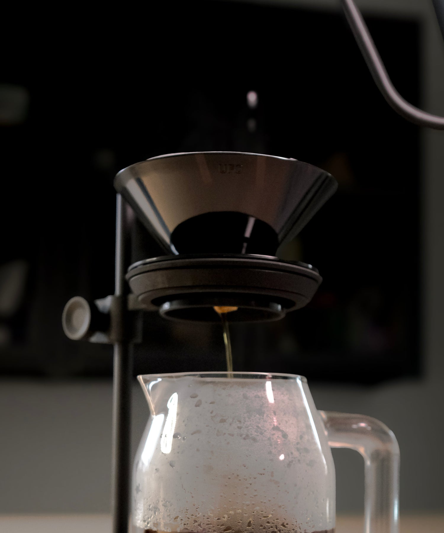 Ceramic UFO is an attempt at stabilizing coffee slurry temperature throughout brewing. Via reducing unnecessary thermal mass from the upper levels of the dripper construction and positioning the dripper as close as possible to the heat retained within the carafe by removing the base, the ceramic UFO is able to create a brewing process that draws from a more stable incubated heat from below the brewer throughout the brewing process.